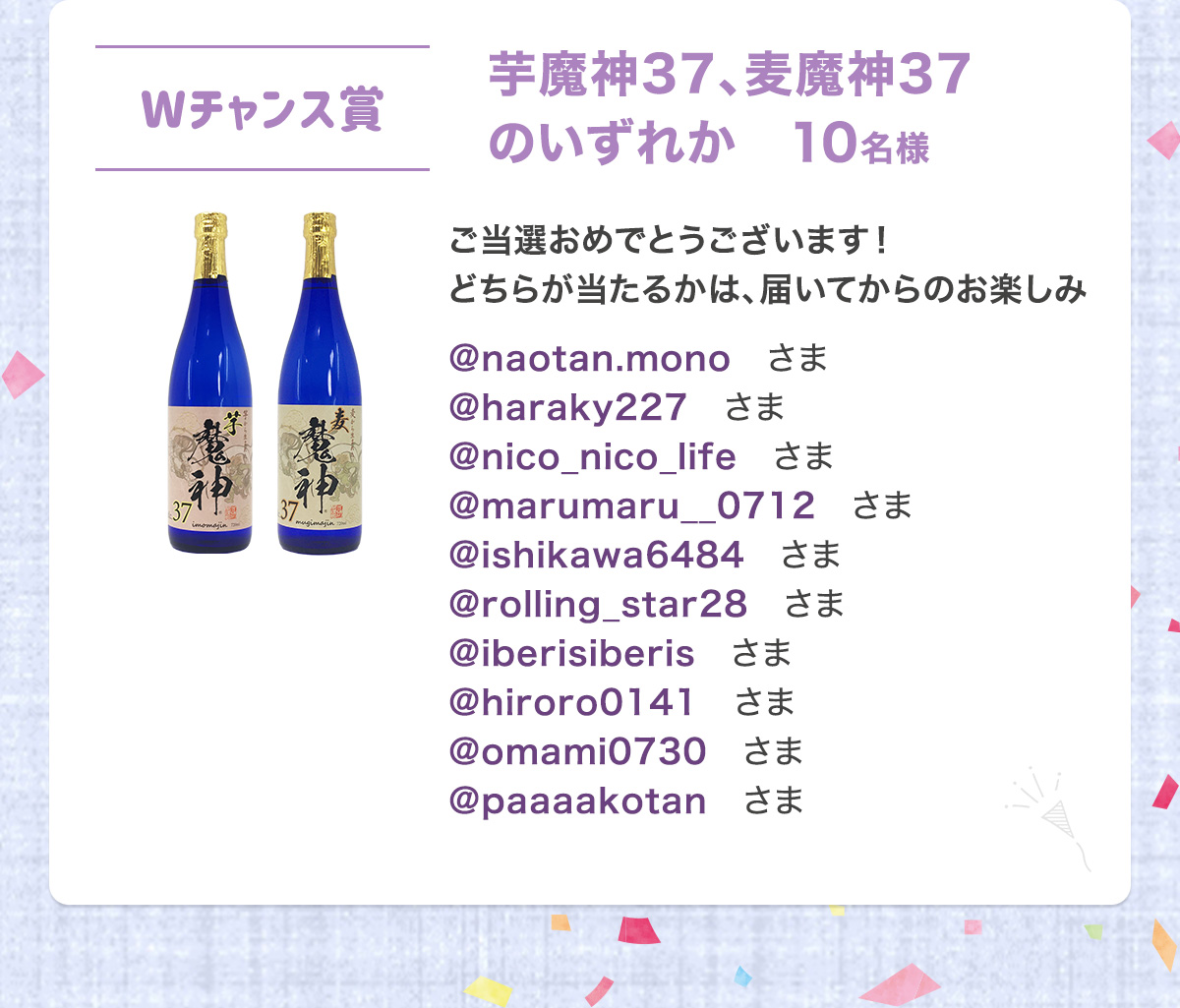 Wチャンス賞「芋魔神37、麦魔神37 のいずれか」10名様