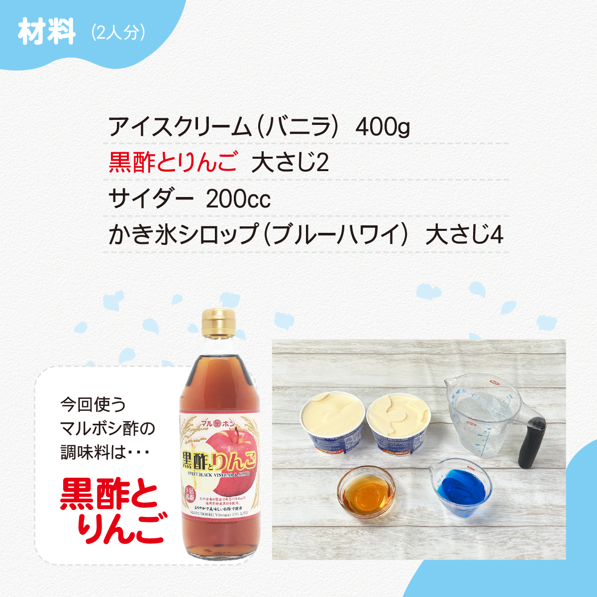 今回のレシピは #マルボシ酢 の #黒酢とりんご を使った #スッキリ風味の空色アイス です。