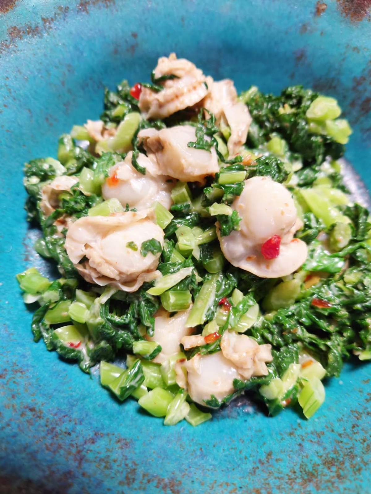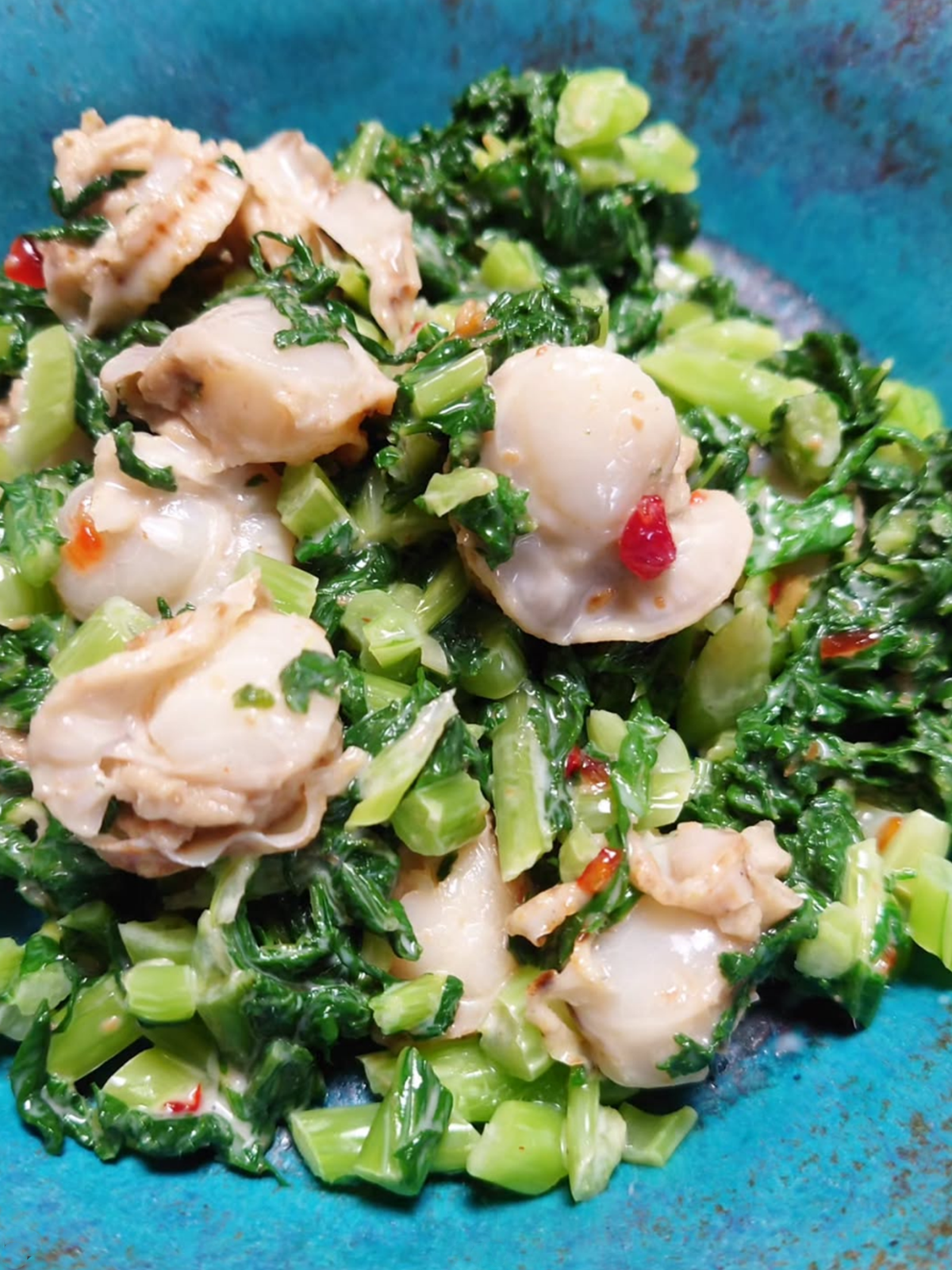 🌿帆立と蕪の葉の胡麻マヨスイチリ和え🌿