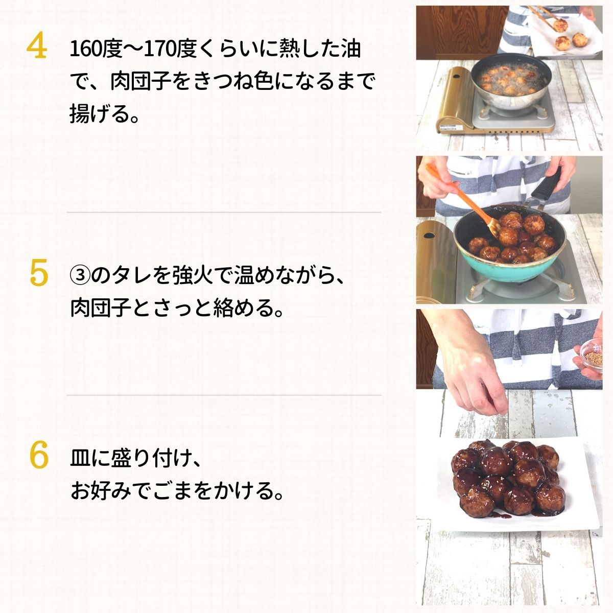 ⑤③のタレを強火で温めながら、肉団子とさっと絡める。